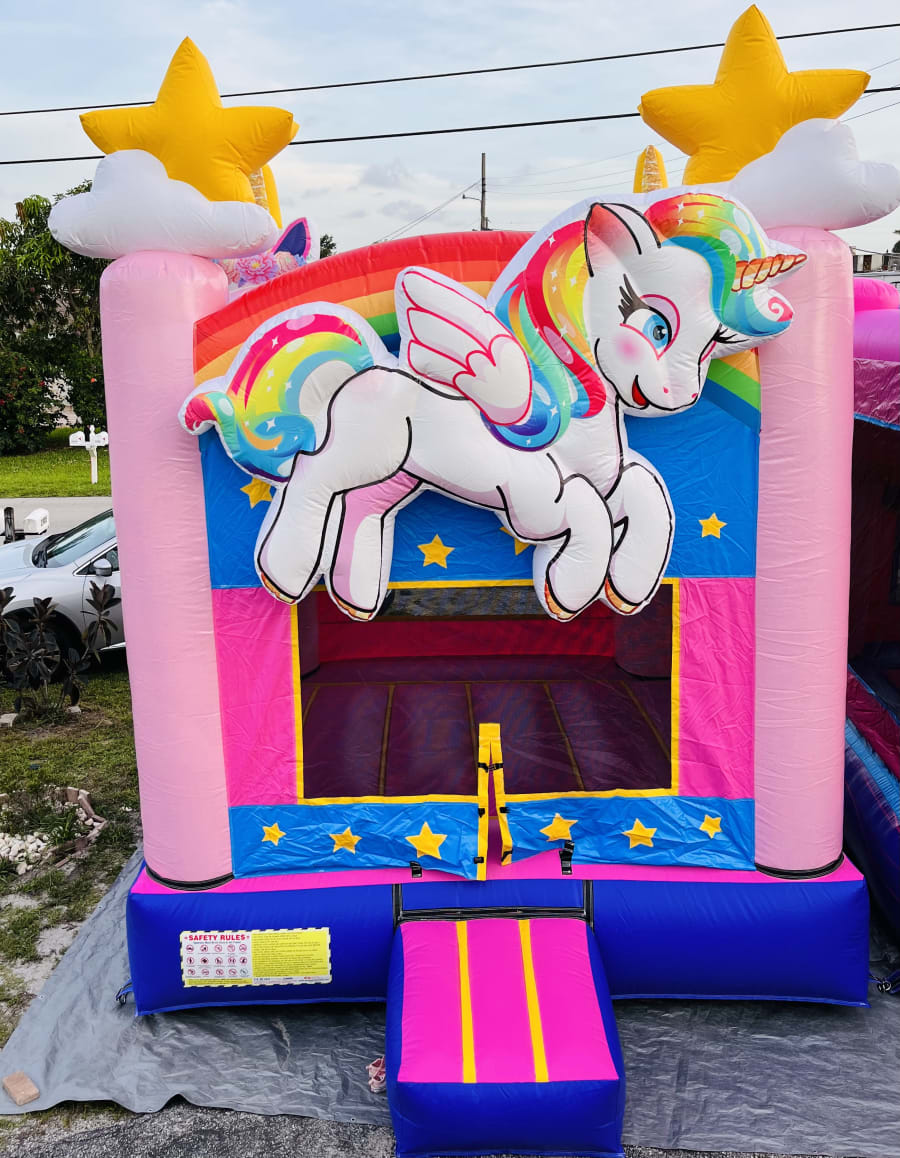 Transform your next party or event into a whimsical wonderland with the Unicorn Deluxe Bounce House. Perfect for birthdays, family gatherings, or any special occasion, this enchanting inflatable promises hours of laughter and active fun for kids of all ages. Its vibrant colors, adorable unicorn design, and spacious jumping area create an unforgettable setting that is sure to delight every guest!