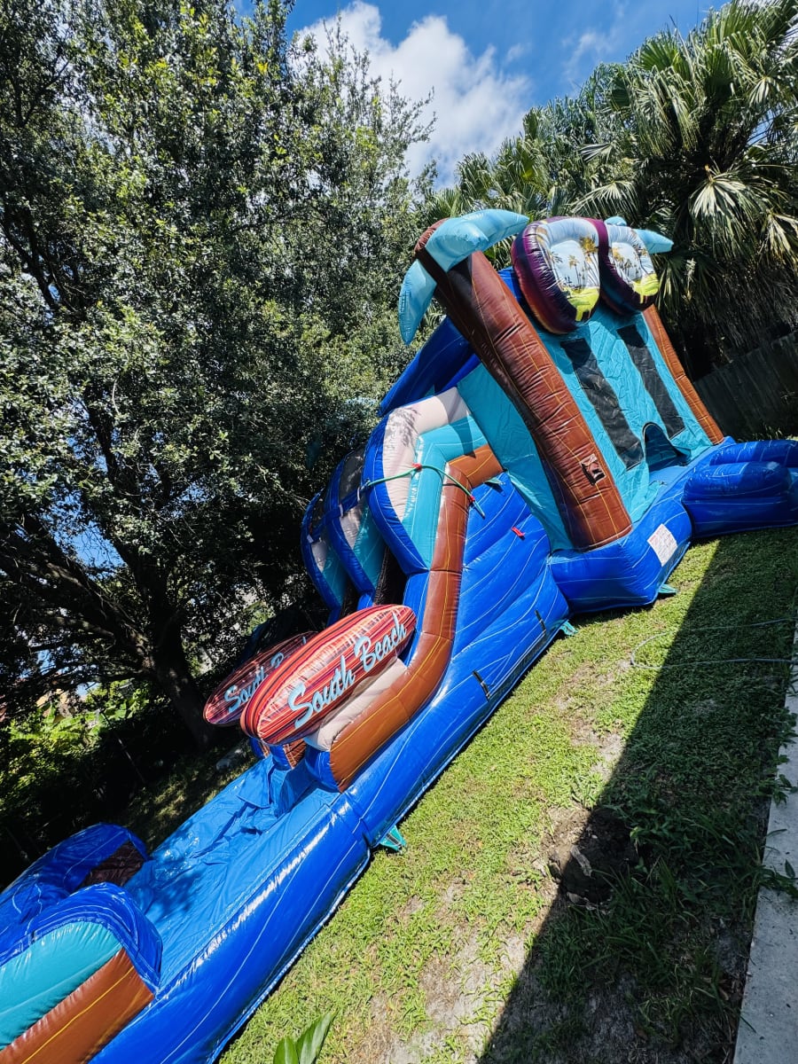 Make your next event unforgettable with the rental South beach wet/dry combo double lane in Port St Lucie and beyond. Perfect for backyard parties, birthdays, family gatherings, and community events, this versatile inflatable offers double the fun and excitement for kids and adults alike!