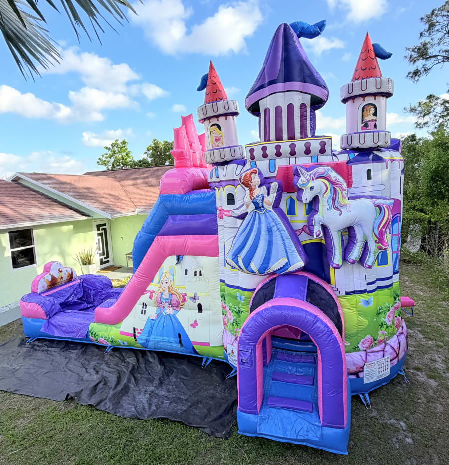 Bring fairy-tale excitement with the Princes combo Wet/dry rental. Designed for young royals, this Princes bounce house delivers safe, colorful fun for birthdays, backyard parties, school events, and community festivals. Book the Princes combo Wet/dry in Port st lucie and beyond to make your celebration unforgettable. ๐
