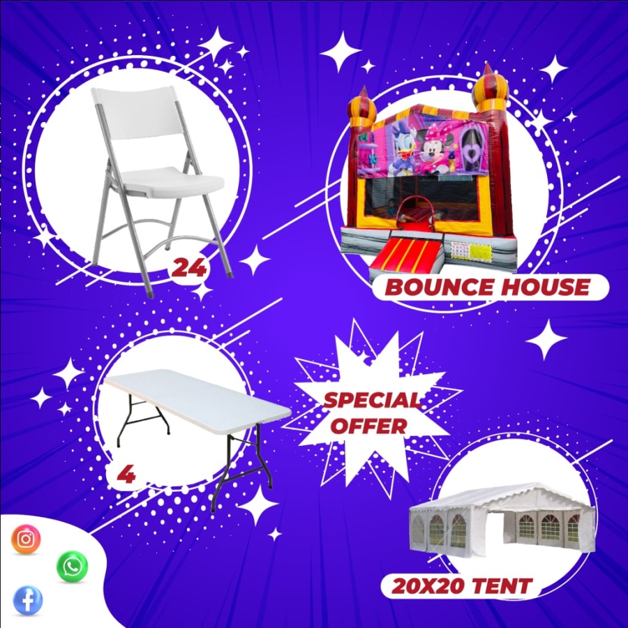 24chairs/4 tables/20x20 Frame Tent with led light/choose your bounce house.
